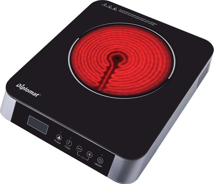 - Η επιτραπέζια εστία DGC A1811 της εταιρείας Diplomat, διαθέτει μία εστία και ισχύ 2000 Watt. Είναι κεραμική με γυάλινη λεία επιφάνεια, η οποία όταν θερμαίνεται αλλάζει σε κόκκινο χρώμα. Θερμαίνεται πολύ γρήγορα και ομοιόμορφα χάρις στις θερμαντικές αντιστάσεις που βρίσκονται κάτω από την επιφάνειά της. Επίσης ο καθαρισμός της είναι πιο εύκολος, σε σχέση με τις κλασικές εμαγιέ εστίες.
