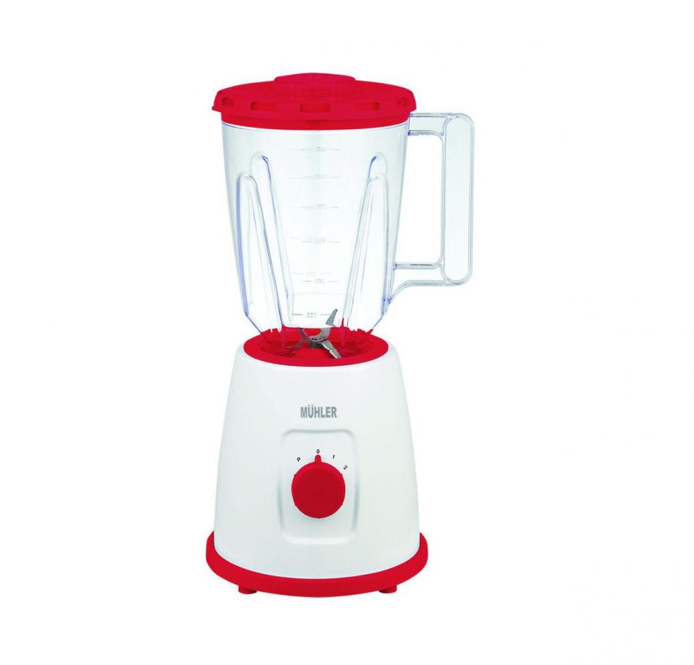 - Το μπλέντερ της εταιρείας Muhler έχει ισχύ 500W, ικανή για να αλέσει υγρά όπως χυμό ή γάλα μαζί με φρούτα. Διαθέτει κανάτα χωρητικότητας 1.5 λίτρων, η οποία μπορεί να καλύψει τις ανάγκες μιας οικογένειας και να βγάλει περίπου 3 με 5 ποτήρια ροφήματος.