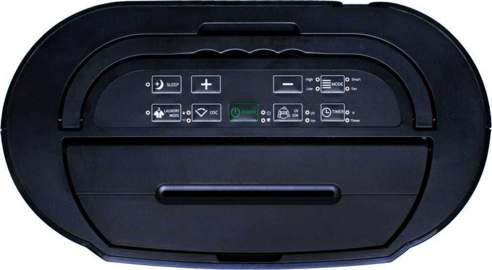 - Λειτουργία smart control. Όταν η υγρασία του χώρου φτάσει στα επιθυμητά επίπεδα, η συσκευή σταμάτα εντελώς την λειτουργία της. Μετά από 30 λεπτά γίνεται εκκίνηση μόνο του ανεμιστήρα. Αν η υγρασία είναι στα επιθυμητά επίπεδα η συσκευή ξανασταματάει αυτόματα, διαφορετικά ξεκινά κανονικά την λειτουργία αφύγρανσης.