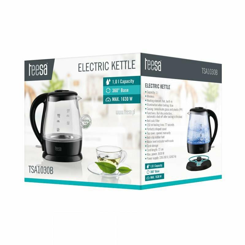 - Ο βραστήρας TSA1030B της εταιρείας Teesa, διαθέτει ισχύ 1630 Watt και χωρητικότητα 1 λίτρο. Μπορεί να σας προσφέρει έως και 5 φλιτζάνια ζεστού νερού. Αποτελεί έναν πολύ χρήσιμο βοηθό για την κουζίνα σας, καθώς ζεσταίνει το νερό σε μικρότερο χρονικό διάστημα, σε σχέση με ένα γκαζάκι ή μια εστία. Έτσι μπορείτε να φτιάξετε πολύ γρήγορα ένα ζεστό ρόφημα ή ακόμα και να τον χρησιμοποιήσετε στις μαγειρικές σας παρασκευές. Διαθέτει κανάτα η οποία είναι κατασκευασμένη από πυρίμαχο γυαλί, και σας δίνει πλήρη ορατότητα καθ'όλη τη διάρκεια του βρασμού. Επίσης είναι ιδανικός για να βράσετε νερό το οποίο προορίζεται για μαγειρικές παρασκευές, καθώς το γυαλί δεν μεταδίδει οσμές ή γεύσεις και είναι απαλλαγμένο από τοξίνες. Θα πρέπει να είστε προσεκτικοί όμως, καθώς το γυαλί είναι περισσότερο επιρρεπές σε φθορές, σε σχέση με το πλαστικό.