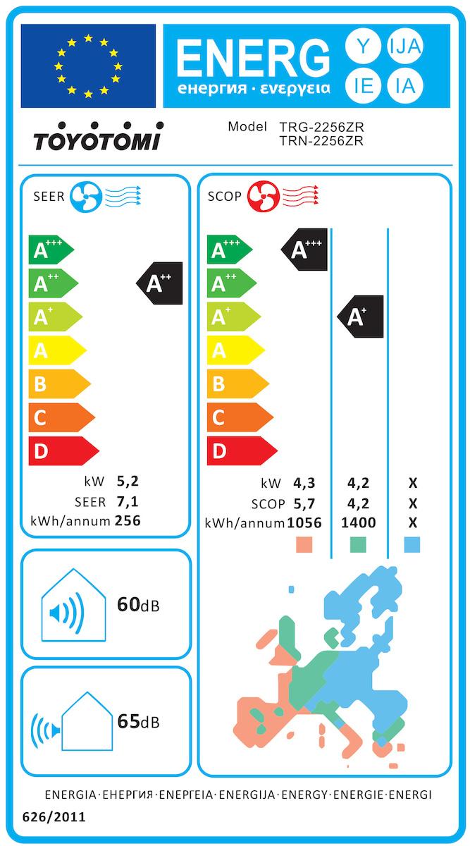 • Το κλιματιστικό ανήκει στην ενεργειακή κλάση A++, στην ψύξη και στην ενεργειακή κλάση A+ στη θέρμανση (μέση ζώνη). Η ενεργειακή κλάση μετριέται σε μια χρωματική κλίμακα επτά βαθμίδων από Α+++ έως D, με την κλάση Α+++ να είναι η αποδοτικότερη, ενώ αντίθετα η κλάση D, η ελάχιστα αποδοτική.