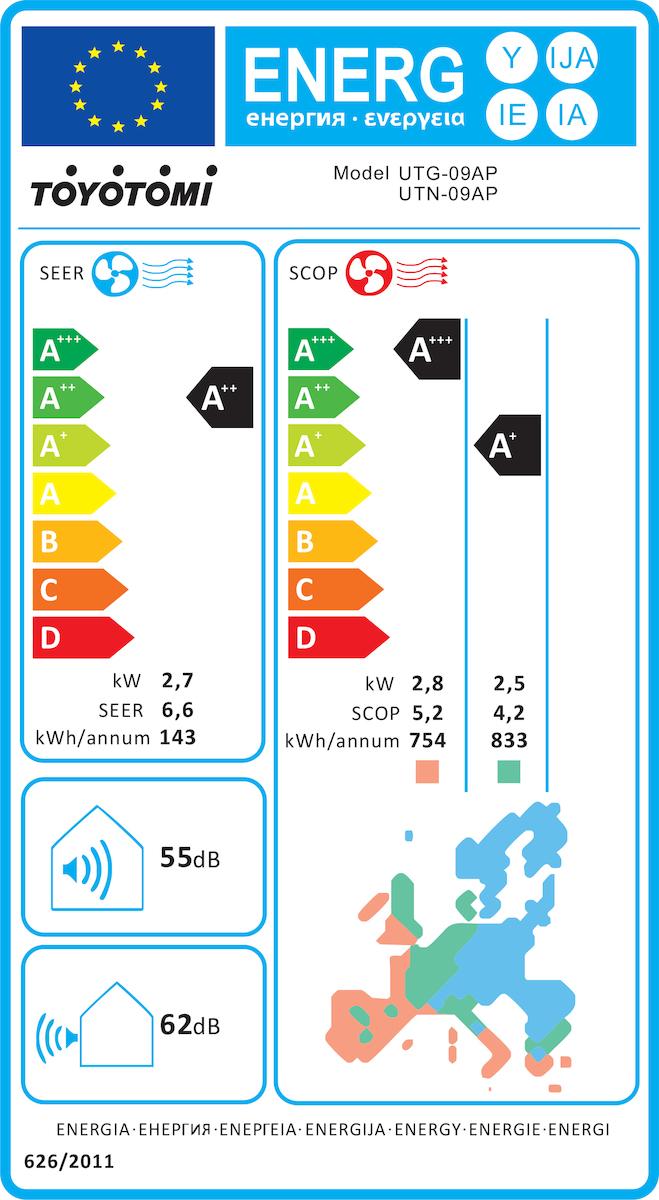 • Το κλιματιστικό ανήκει στην ενεργειακή κλάση A++, στην ψύξη και στην ενεργειακή κλάση A+ στη θέρμανση (μέση ζώνη). Η ενεργειακή κλάση μετριέται σε μια χρωματική κλίμακα επτά βαθμίδων από Α+++ έως D, με την κλάση Α+++ να είναι η αποδοτικότερη, ενώ αντίθετα η κλάση D, η ελάχιστα αποδοτική.