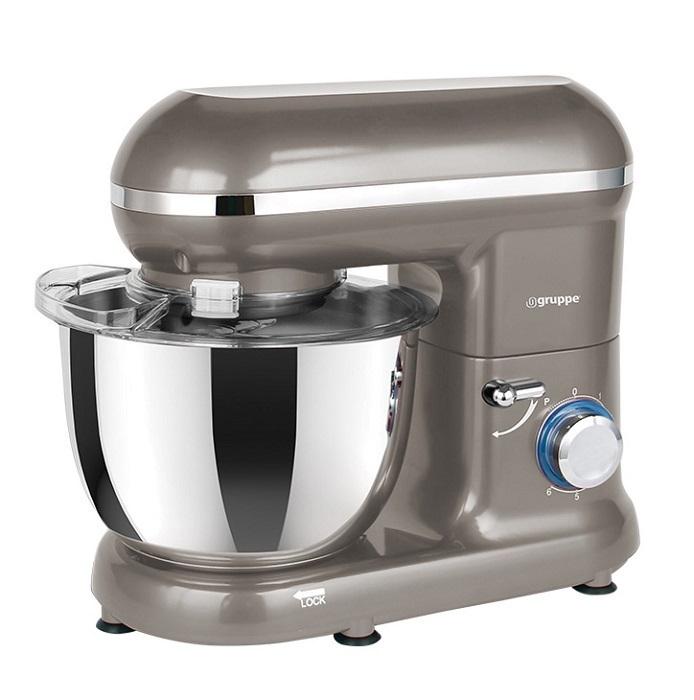 - Η κουζινομηχανή της Gruppe έχει ανοξείδωτο κάδο με συνολική χωρητικότητα 4.5 λίτρα και μοτέρ ισχύος 1500W. Μπορείτε να χρησιμοποιήσετε τον αβγοδάρτη για να δημιουργήσετε αφράτα μίγματα όπως μαρέγκα, κρέμα σαντιγί ή και ζύμη για κρέπες. Επίσης διαθέτει αναδευτήρα, ιδανικό εξάρτημα για ζύμες κέικ, ζύμες ζυμαρικών, ακόμη και για να φτιάξετε πουρέ πατάτας.