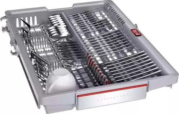 - Το 3ο ευέλικτο καλάθι, που βρίσκεται στο πάνω μέρος του πλυντηρίου πιάτων σας, δημιουργεί χώρο για μικρά σκεύη, ρηχά μπολ, κύπελλα μέτρησης και πολλά άλλα. Διαθέτει επίσης μια κινούμενη θήκη για μαχαίρια, η οποία, όταν μετακινηθεί, αυξάνεται ο χώρος στο κάτω καλάθι. Έτσι έχετε μεγαλύτερη ευελιξία τοποθέτησης για τα μικρά σκεύη σας.