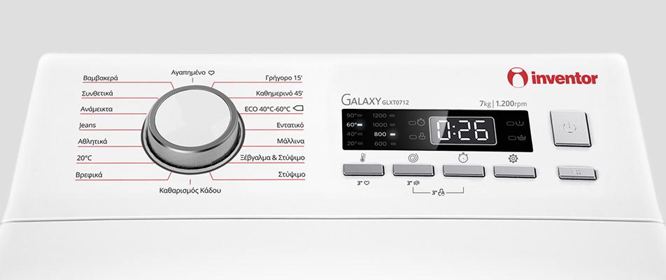 - Το πλυντήριο ρούχων GLXT0712 από τον κατασκευαστή Inventor, έχει χωρητικότητα κάδου κατάλληλη για έως και 7 κιλά άπλυτων ρούχων, και μπορεί να καλύψει τις ανάγκες μιας οικογένειας τριών ατόμων. Η πόρτα βρίσκεται στο πάνω μέρος της συσκευής και η φόρτωση των ρούχων γίνεται κάθετα. Έτσι το γέμισμα είναι πιο ξεκούραστο, αφού δε χρειάζεται πλέον να σκύβετε και να πιέζετε την πλάτη σας για να γεμίσετε τον κάδο. Είναι ιδανικό για τοποθέτηση σε στενότερους χώρους, καθώς το μήκος του είναι μόλις 40 εκατοστά.