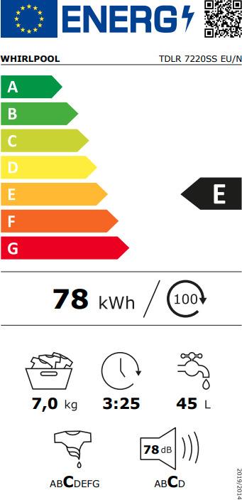 Whirlpool TDLR 7220SS EU/N Πλυντήριο Ρούχων Άνω Φόρτωσης 7kg 1200 Στροφών