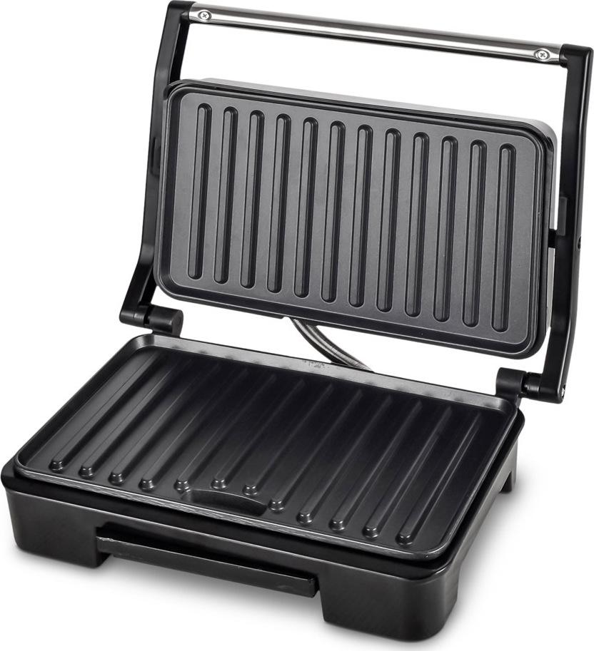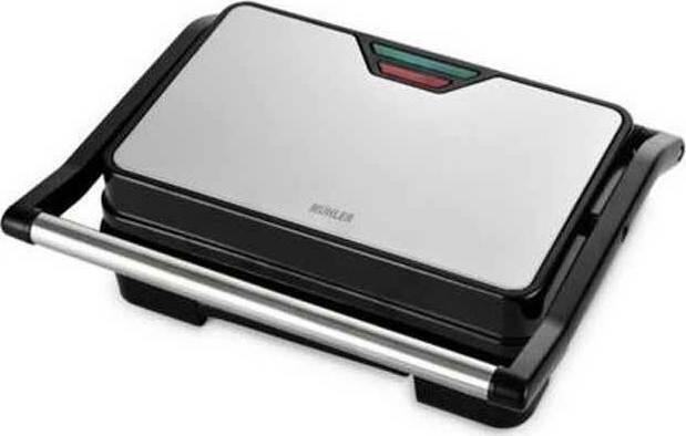 - Τοστιέρα/γκριλιέρα, της εταιρείας Muhler, με ισχύ 850 Watt. Οι πλάκες της είναι με ραβδώσεις, οι οποίες δε συγκρατούν πολλά υγρά όπως λάδια και λίπη, και έτσι το ψήσιμο γίνεται πιο υγιεινό.