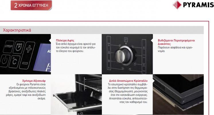 - Εντοιχιζόμενος φούρνος της Pyramis που συνδυάζεται με οποιαδήποτε αυτόνομη εστία και μπορεί να τοποθετηθεί ανεξάρτητα από αυτές σε οποιοδήποτε σημείο.
