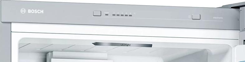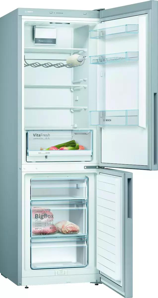 - Ψυγειοκαταψύκτης της Bosch με χωρητικότητα 308 λίτρα, που μπορεί να καλύψει άνετα τις ανάγκες ενός ζευγαριού ή και μιας οικογένειας 3 ατόμων. Θεωρείται αθόρυβο, 39db, χάρη στο χαμηλό επίπεδο θορύβου που διαθέτει.