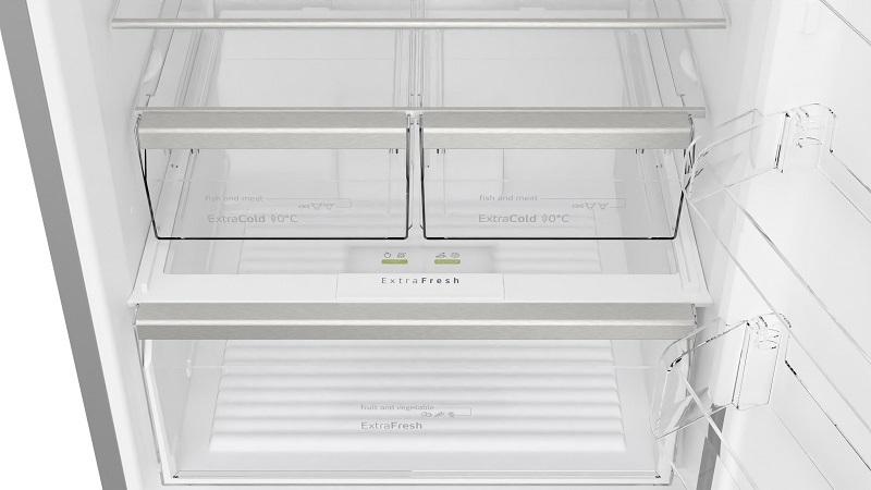 - Συρτάρι εξαιρετικά χαμηλής θερμοκρασίας, ιδανική για τη συντήρηση ευπαθών τροφίμων, όπως κρέας, ψάρι, πουλερικά και φρεσκομαγειρεμένο φαγητό. Η θερμοκρασία στο συρτάρι είναι 2-3°C χαμηλότερη από την υπόλοιπη συντήρηση, ενώ η σχετική υγρασία διατηρείται κοντά στο 50%, επιβραδύνοντας το μεταβολισμό των τροφίμων.