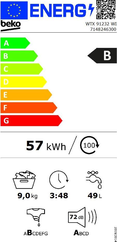 - Το πλυντήριο ρούχων WTX 91232 WI από τον κατασκευαστή Beko, έχει χωρητικότητα κάδου κατάλληλη για έως και 9 κιλά άπλυτων ρούχων, και μπορεί να καλύψει τις ανάγκες μιας πενταμελούς οικογένειας. Η φόρτωση των ρούχων γίνεται από τη στρογγυλή πόρτα στο μπροστινό μέρος της συσκευής, και για τον λόγο αυτό ονομάζεται εμπρόσθιας φόρτωσης.